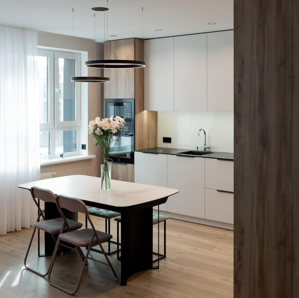 Ovaj interijer nastao je u suradnji s dizajnerom koji je donio smjernice za jednostavan, ali vizualno jak prostor. Korišteni su svijetli, mat materijali u kombinaciji s crnim detaljima i ravnim linijama koje prostoru daju ozbiljan, moderan karakter.